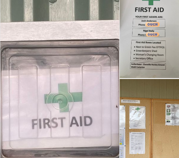 All accidents MUST be reported as soon as possible to a Club Officer for entry into the Accident register. Report to the office or to one of the Health and Safety Committee members named on this board.